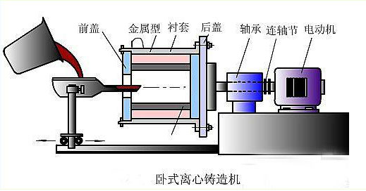 离心铸造是将液态金属浇入绕入旋转的铸型,凝固成形的铜铸件轴线与旋转铸型轴线重合。在离心力作用下,金属结晶从铸型壁向铸件内表面顺序进行